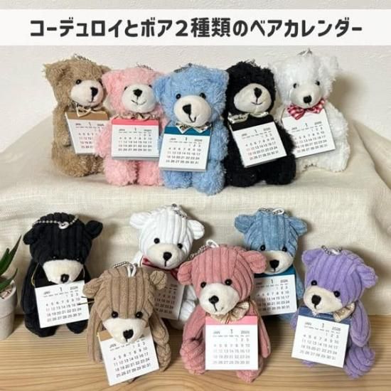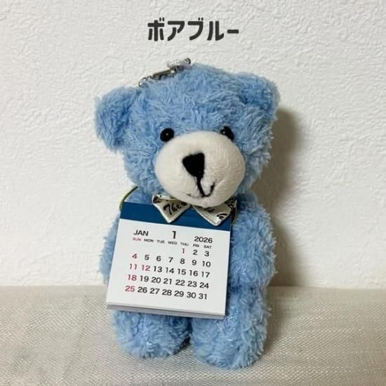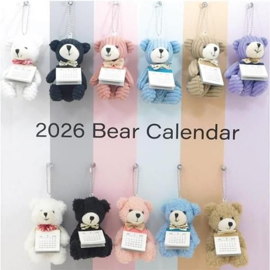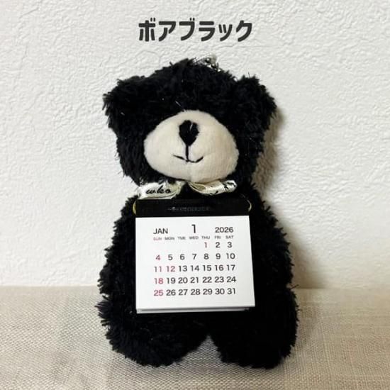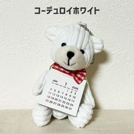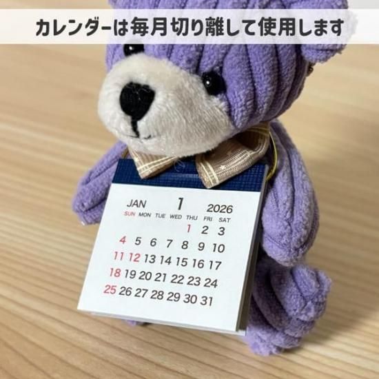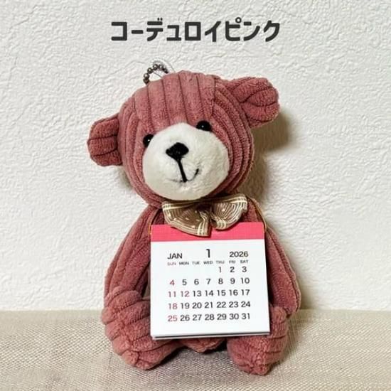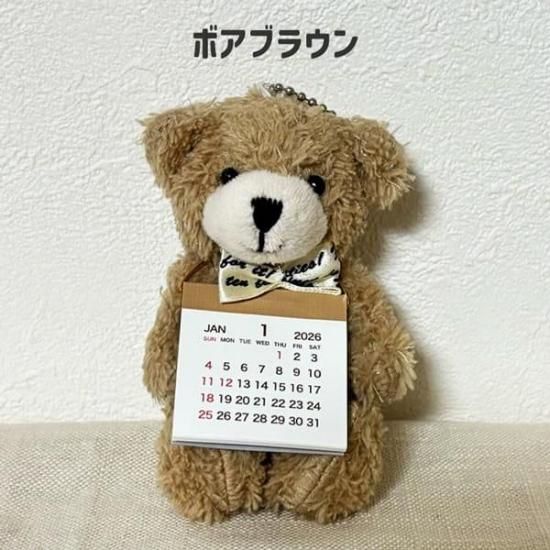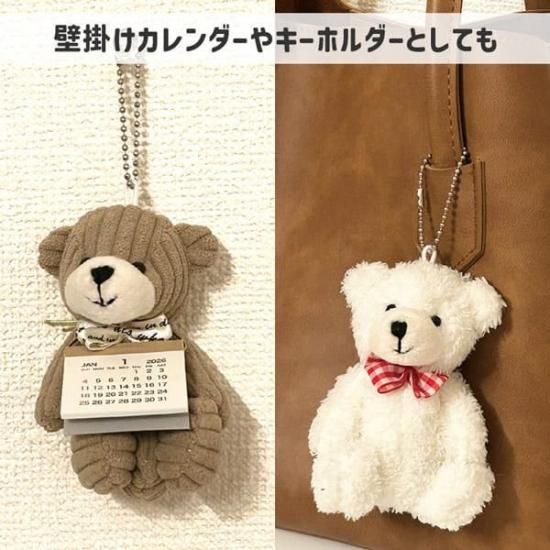 ちいさいくまのぬいぐるみに2026年度のカレンダーが付いた便利でかわいいアイテム。