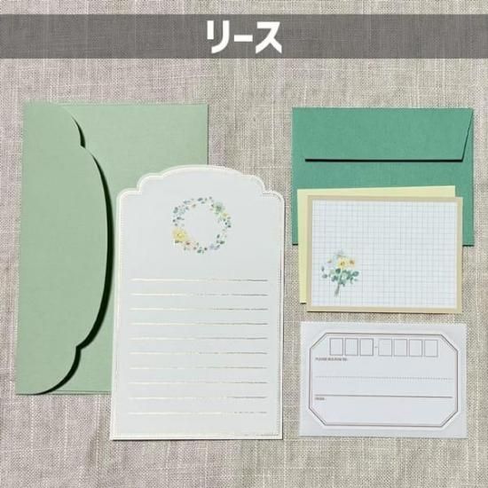 定型内封筒2枚、便箋4枚、宛名シール2枚、プチ封筒2枚、プチ便箋2枚がセットされています。