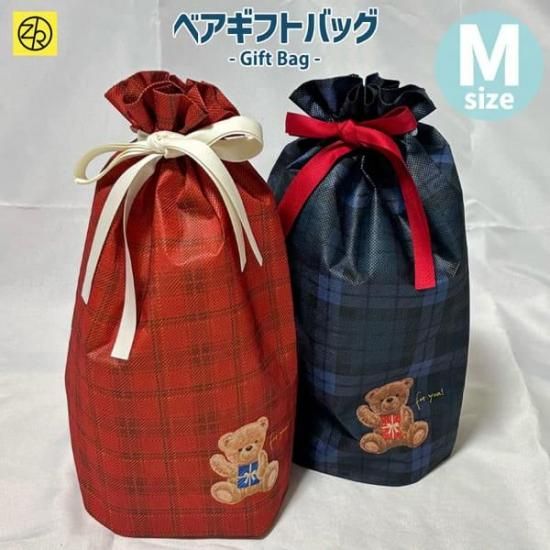 ベアギフトバッグ M くま ラッピング 袋 巾着 底マチあり
